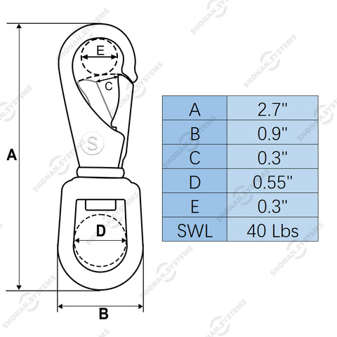 - The swivel eye is capable with cables which diameter is under 0.55 inches. The working capacity of swivel snap clips is 40 pounds.